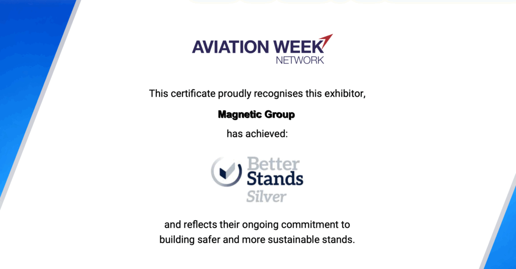 This year, one of our core principles was formally recognised. At MRO Asia-Pacific 2025, Magnetic Group received the Better Stands Silver rating from Aviation Week, an achievement awarded only to exhibitors who demonstrate forward-thinking, sustainable booth design. For us, it represents more than a certificate. It reflects how our event philosophy has evolved and matured.